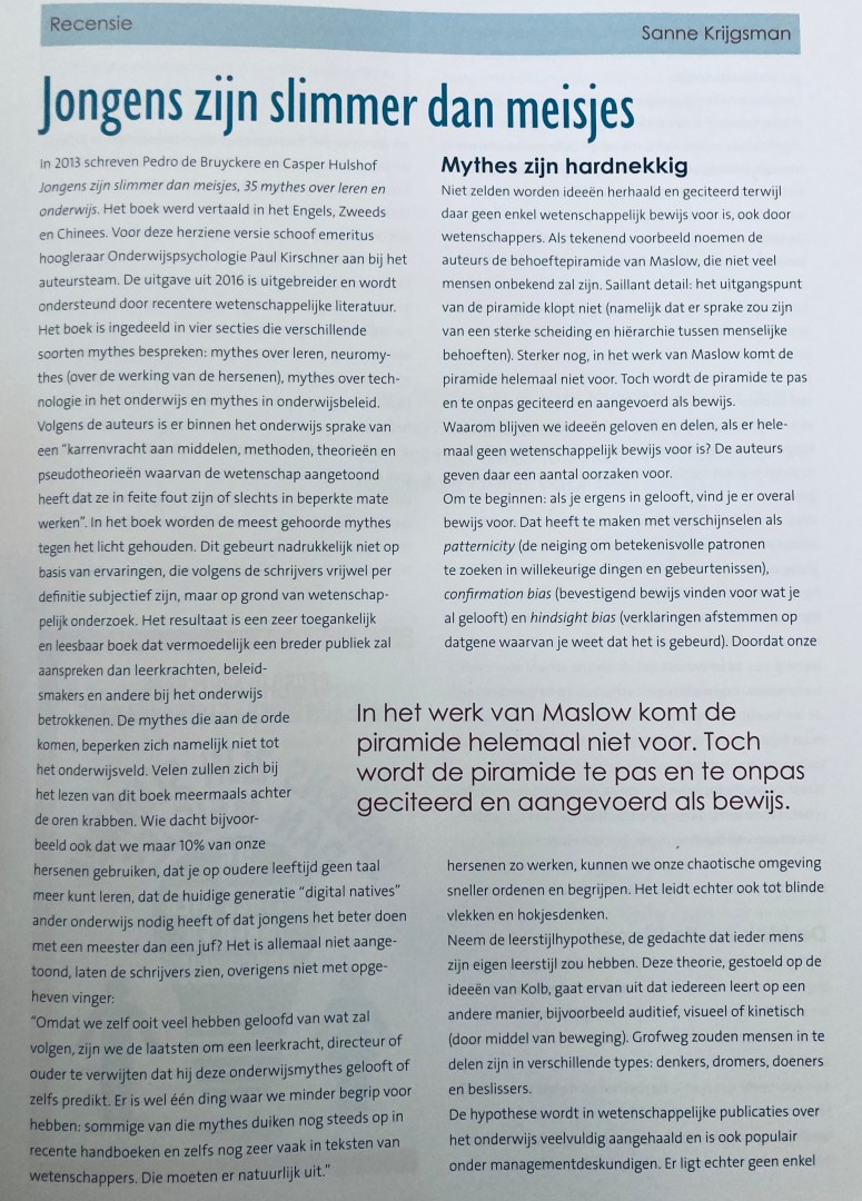 Recensie over het boek Jongens zijn slimmer dan meisjes van Pedro Debruyckere et.al, voor Remediaal (tijdschrift voor Educational needs).